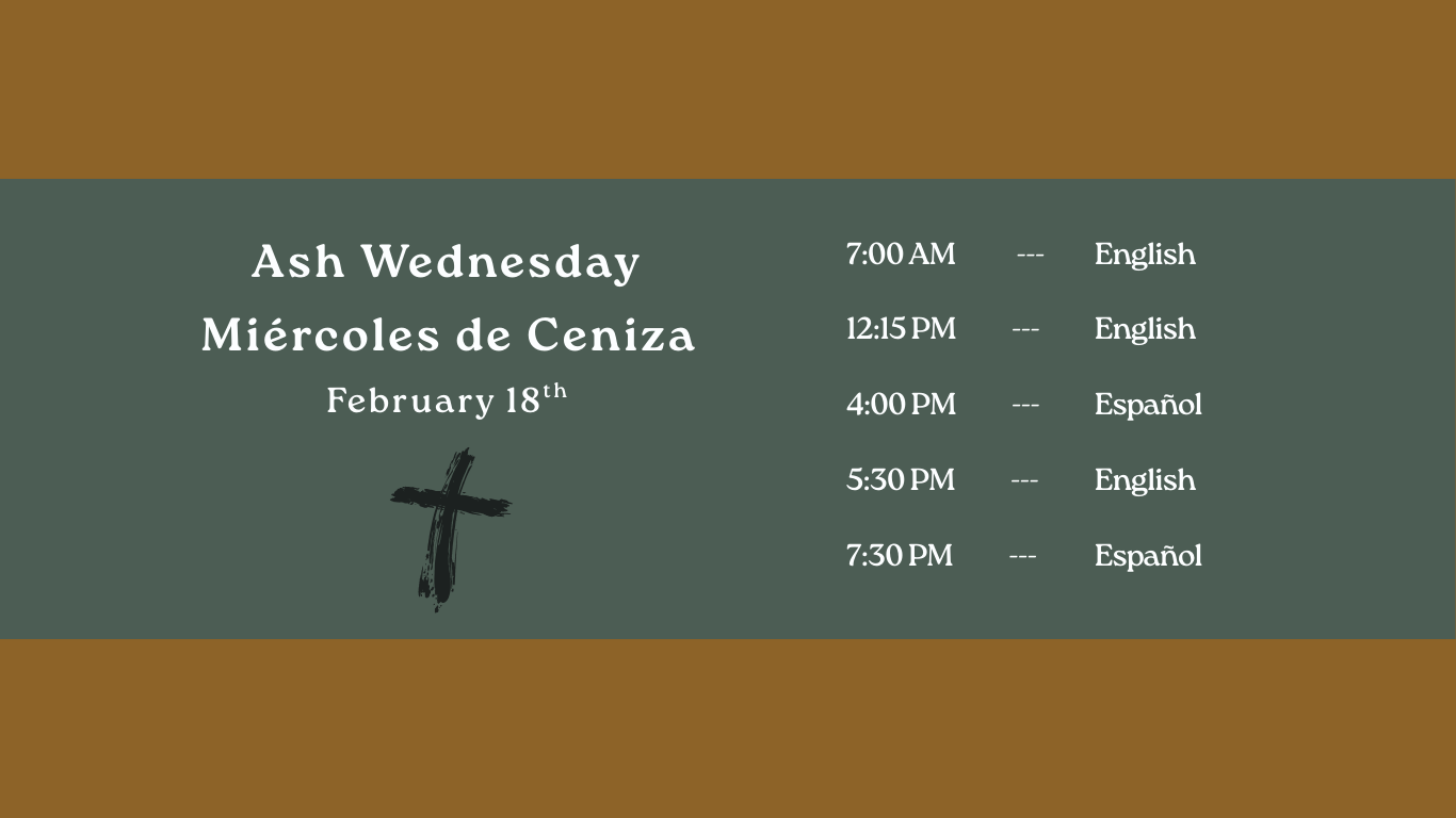 Saturday: 5:00pm, 7:00pm (Sp.)